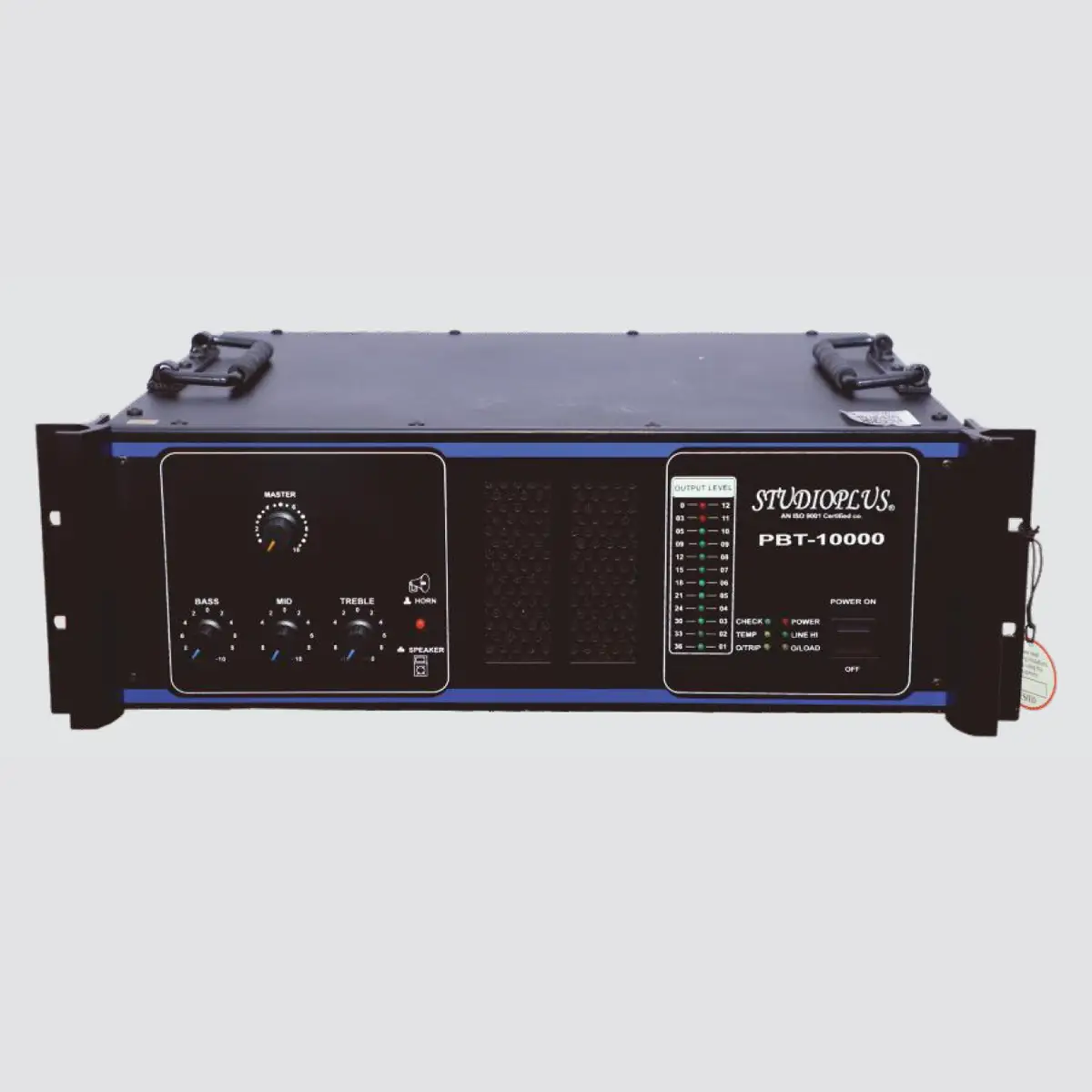 STUDIOPLUS PBT DJ & PA series is rugged and most reliable amplifier with available in two different variants. Specially designed for wide variety of PA applications and DJ performances, It can be connected to various input sources like a PA Mixer, DJ Mixer, CD/DVD player, Cassette player and Musical Instruments like Guitar, Keyboard etc. The amplifier has built-in protection against over voltage in AC mains supply which is specially useful while operating on Gensets.