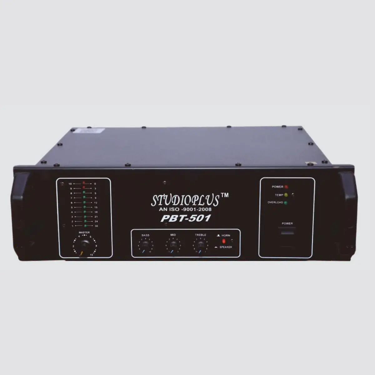 STUDIOPLUS PBT DJ & PA series is rugged and most reliable amplifier with available in two different variants. Specially designed for wide variety of PA applications and DJ performances, It can be connected to various input sources like a PA Mixer, DJ Mixer, CD/DVD player, Cassette player and Musical Instruments like Guitar, Keyboard etc. The amplifier has built-in protection against over voltage in AC mains supply which is specially useful while operating on Gensets.