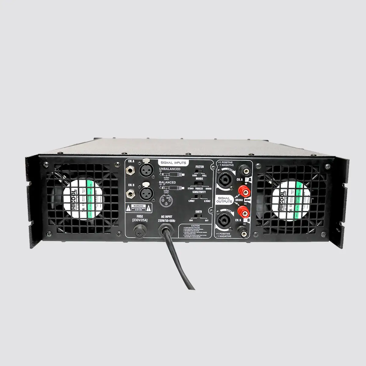 POWER OUTPUT | 2 x 2000W RMS at 2Q FOR EACH CHANNEL |