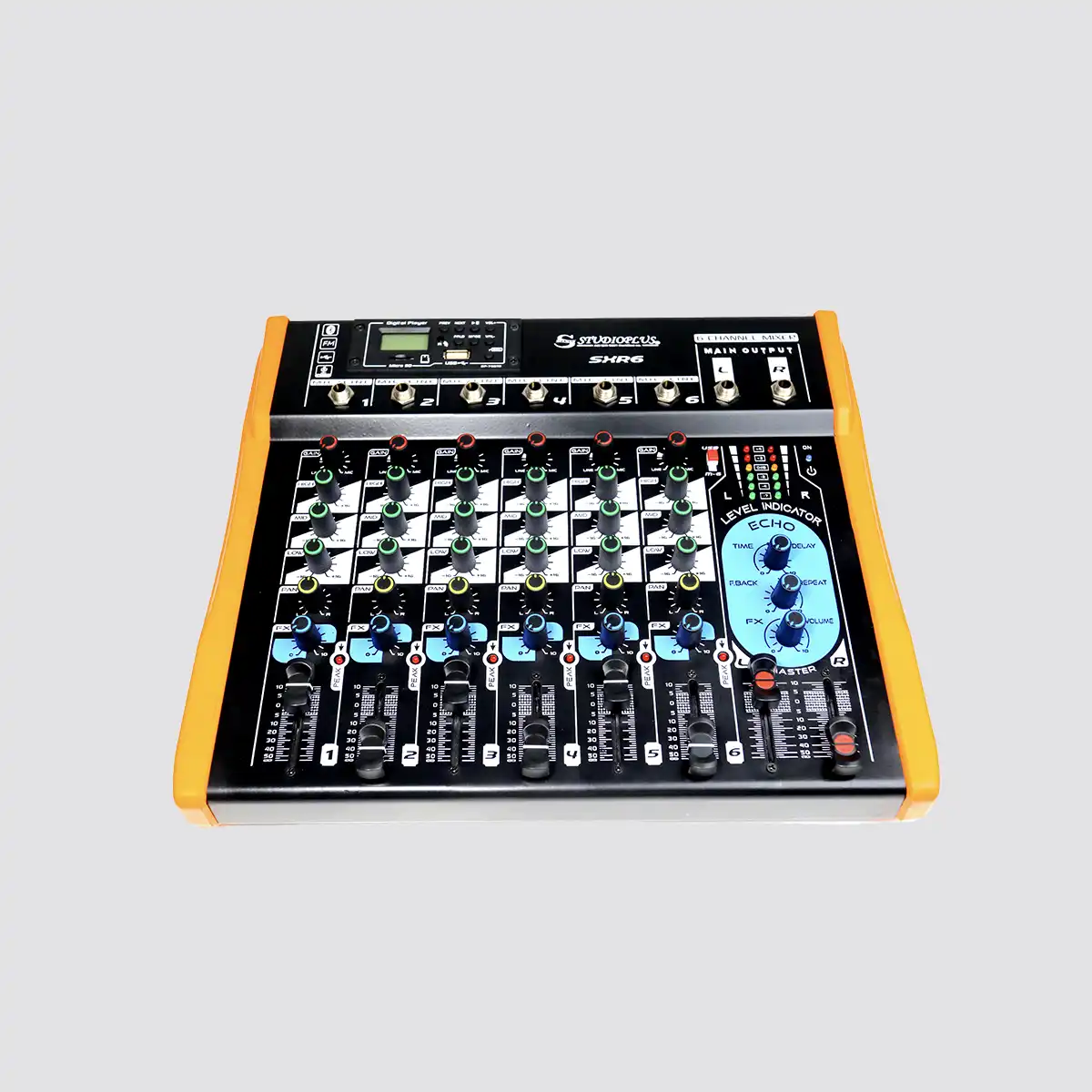 STUDIOPLUS Professional Audio Mixers enable effortless management of multi-microphone installations under the most demanding conditions. It provides small, portable units for field use and large table top units for large music programmes.